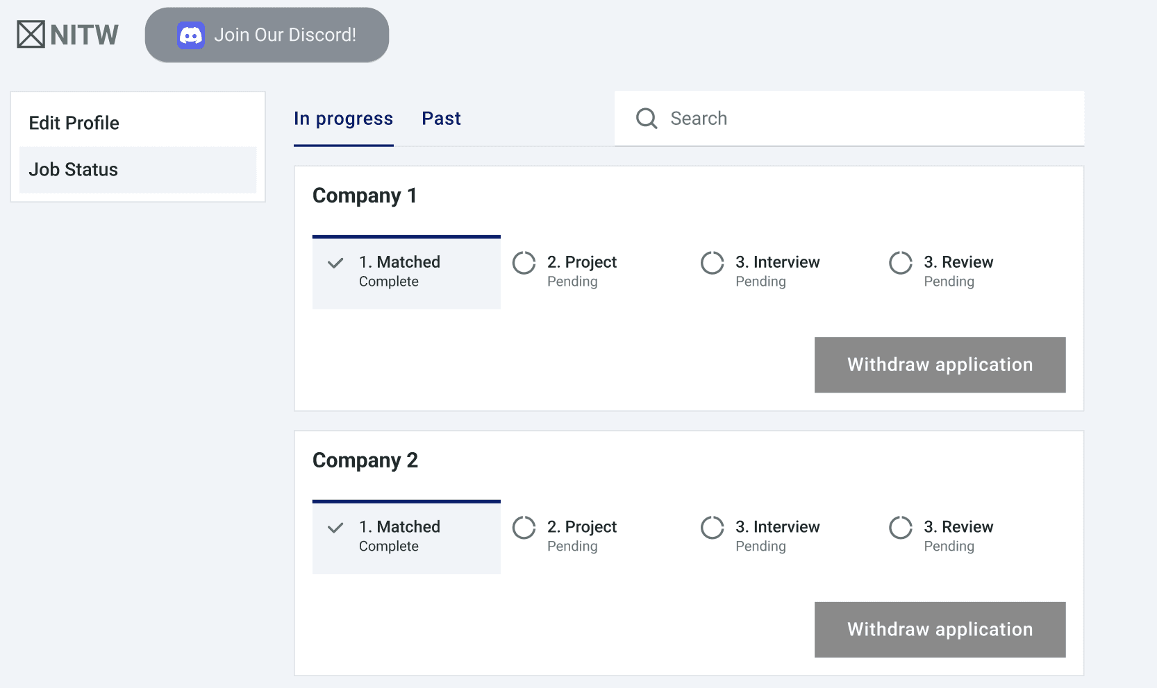 Job seekers can see clearly which companies they've been matched with and where they are in the process. They can also view past matches.
