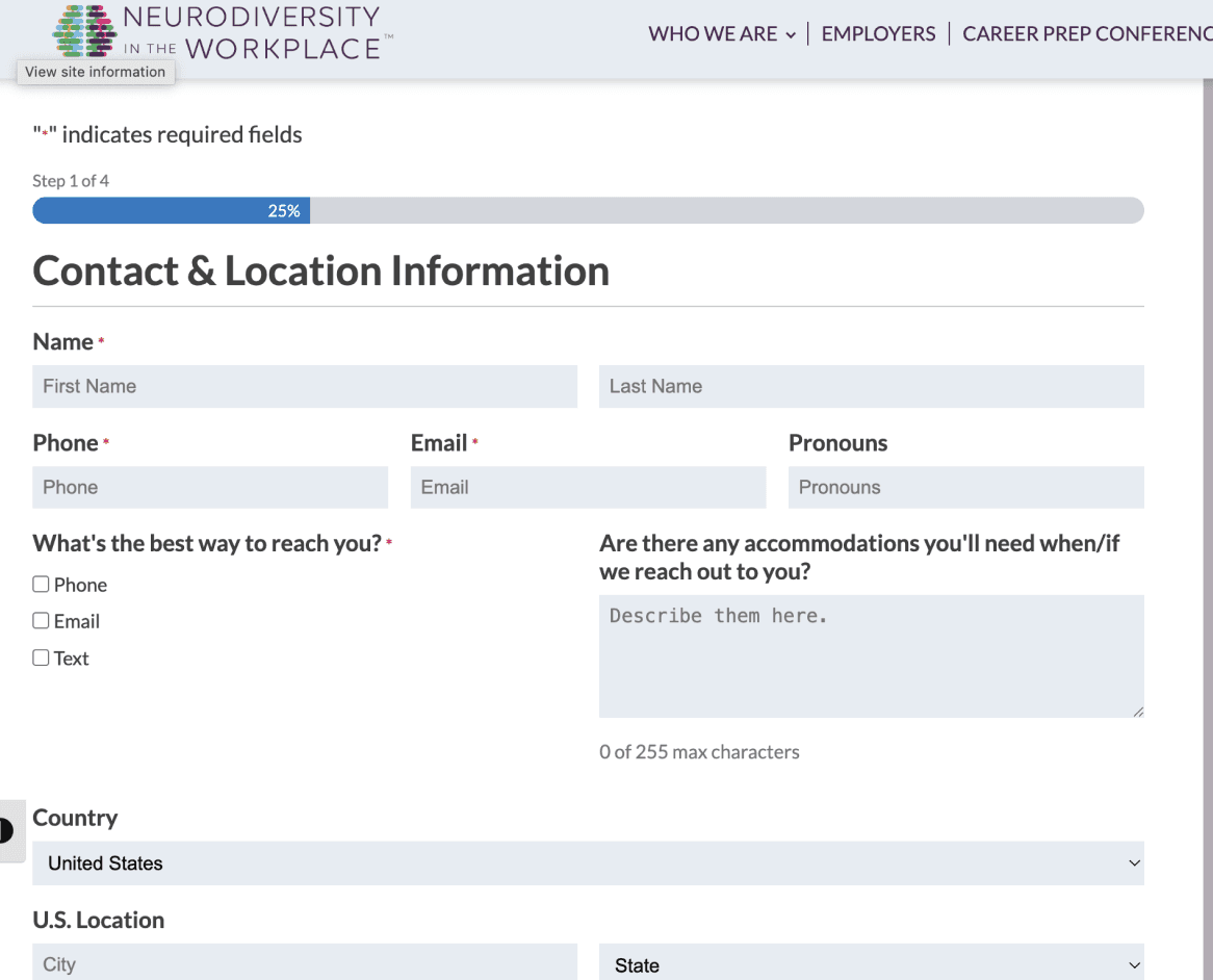 Job-matching platforms that worked well for neurodivergent job seekers had clear transparency, immediate job browsing, and direct application steps. Our market analysis included Mentra, Equity at Work, and Neurodiversity Career Connector. Through this process, we discovered that the candidate experience for NITW is more opaque with limited visibility into the job pipeline, unclear matching timelines, and no dashboard tracking status. While NITW only utilized an initial intake form to match candidates, other competitive tools had a more established system where job seekers could view updates. There is a missed opportunity to keep candidates in the loop instead of letting everything happen behind the scenes.