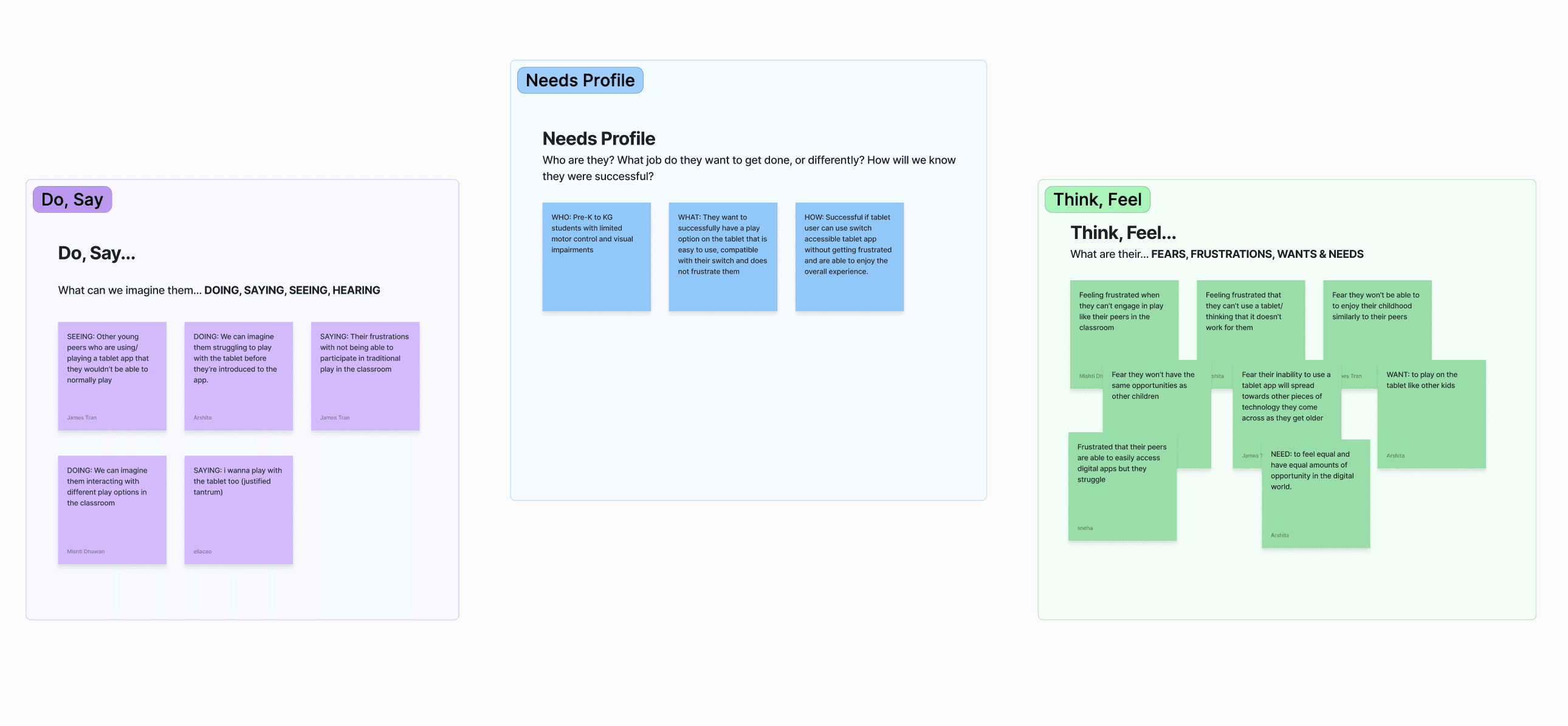 Secondary Research to identify what solutions currently existed in the market. We analyzed One Switch Websites and Papunet games and identified that existing solutions had several gaps in how affordable and functional they were.